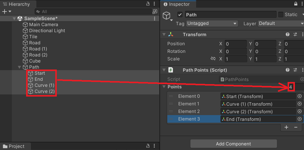 먼저 경로 포인트들을 담을 스크립트 PathPoints를 하나 작성하자.